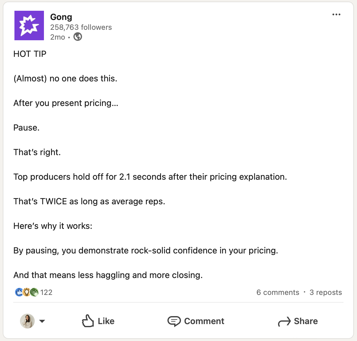 (No wonder Gong has 259,000+ followers on LinkedIn.)
