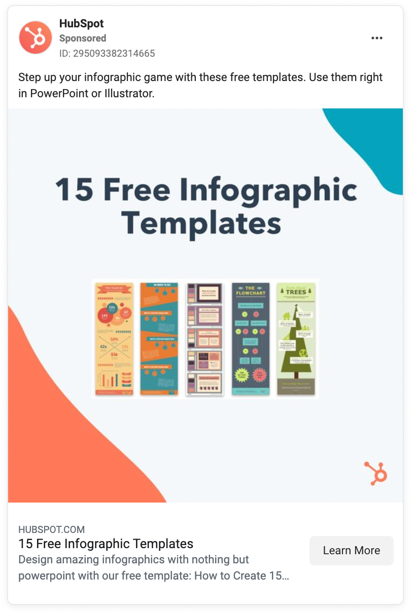 This is an awesome example of a retargeted social ad from HubSpot, a CRM, marketing, sales, and customer service software company. Why is it awesome? It offers leads something productive that, while it doesn’t require a purchase, will give them a preview of what they can gain from using Hubspot, building trust.