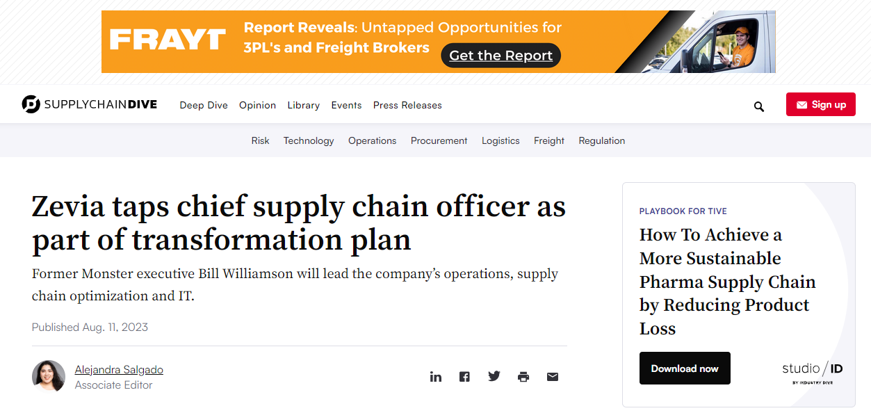 Source: Zevia taps chief supply chain officer as part of transformation plan by Supply Chain Dive