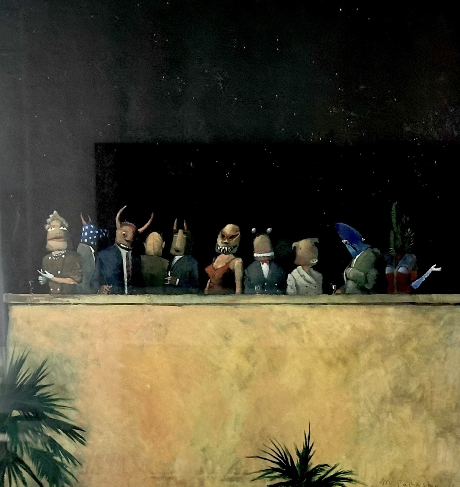 In the background of most of my video calls, if you look closely, you’ll see a print from the illustrator Michael Paraskevas. Aptly called “The Advertising Art Directors’ Convention,” it shows a crowd (in business casual) on a balcony, with muppet-like animals and objects as heads. It’s a little weird and very silly, and it serves as a perpetual reminder to not take what I do too seriously.