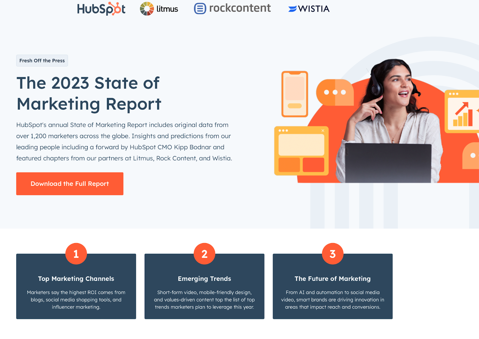 From hundreds of downloadables (aka lead magnets) to its annual State of Marketing Report, HubSpot has cemented its reputation as a brand that cares about marketing and will tell you all its secrets. Its marketing strategy clearly works — with over 184,000 businesses in 120 countries. And to prove how great their product is, they publish an annual ROI report.