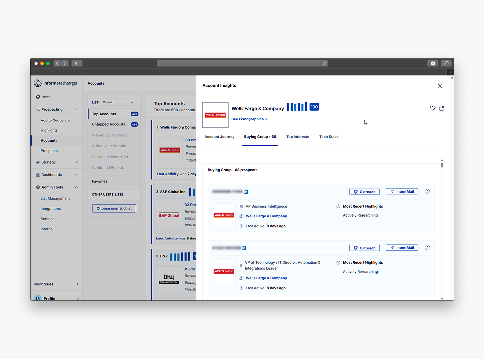 Informa TechTarget continuously identifies new contacts from in-market accounts who are researching relevant topics across our network. These aren’t just any contacts – they’re permissioned buyers who can be contacted by email and phone. By automatically adding our Active Prospects into topically aligned Outreach sequences, your sellers can take immediate and relevant action on in-market buyers so they can get into deals faster and create more opportunities.