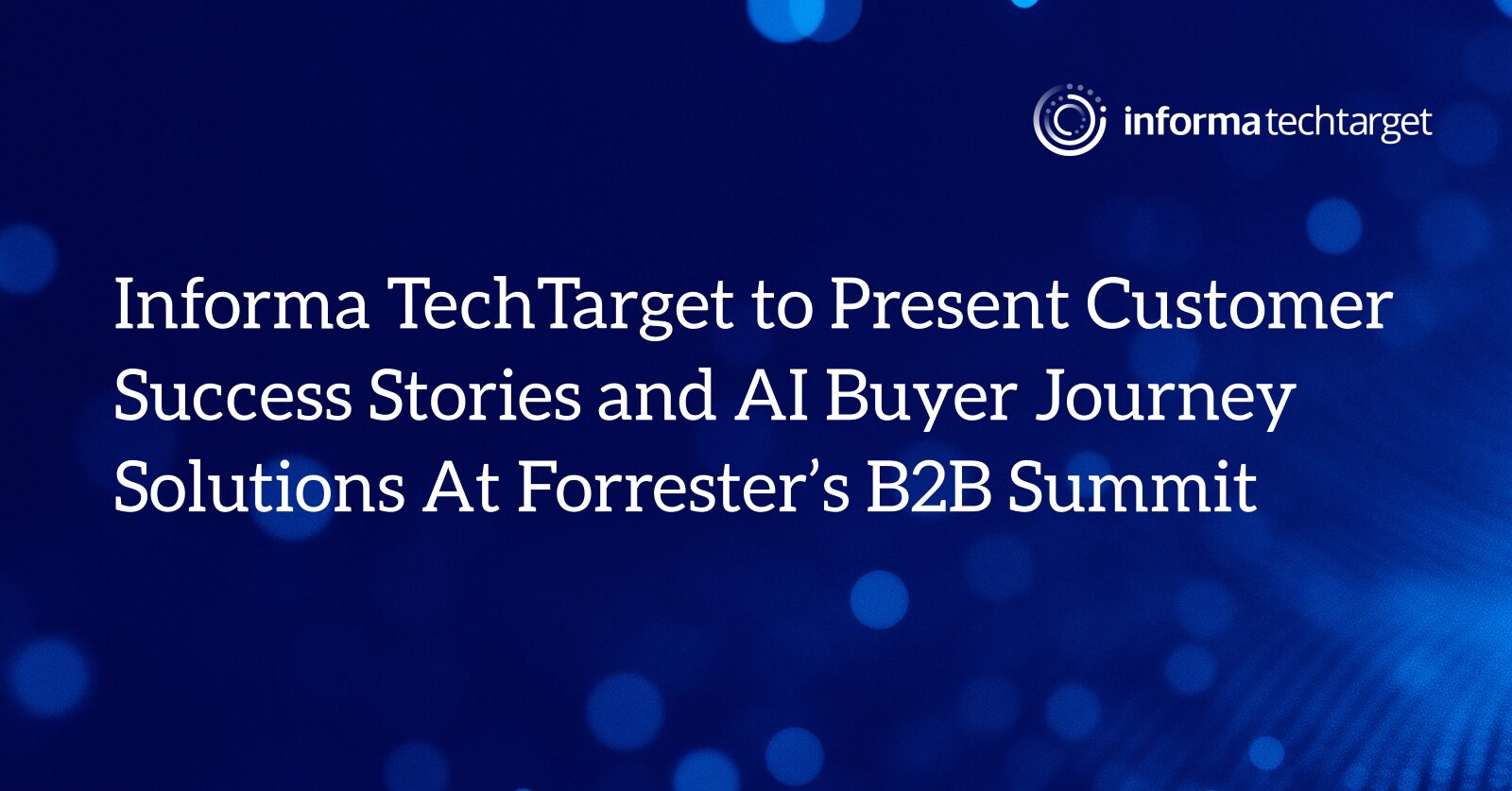 “Forrester’s B2B Summit North America is the premier event for B2B strategy, marketing, and sales leaders, and we’re excited to have a prominent presence at this year’s event,” said Steve Niemiec, Chief Revenue Officer of Informa TechTarget. “This event is a unique opportunity to showcase the incredible work of our customer partners, Iron Mountain and Tanium, and to demonstrate how Informa TechTarget is helping businesses navigate the complexities of AI-driven buyer journeys. We look forward to sharing the stage with these industry leaders and engaging with attendees throughout the summit.”